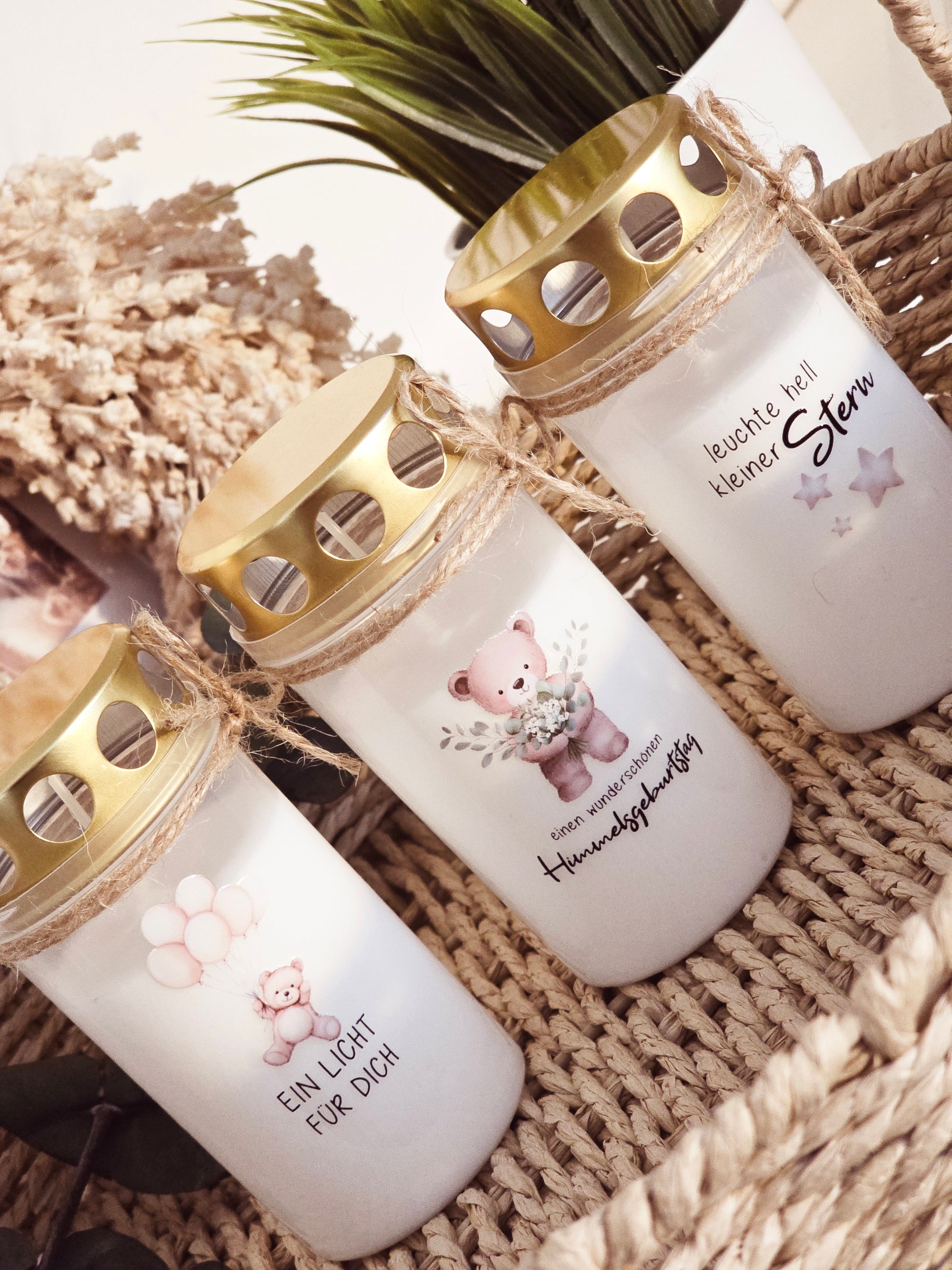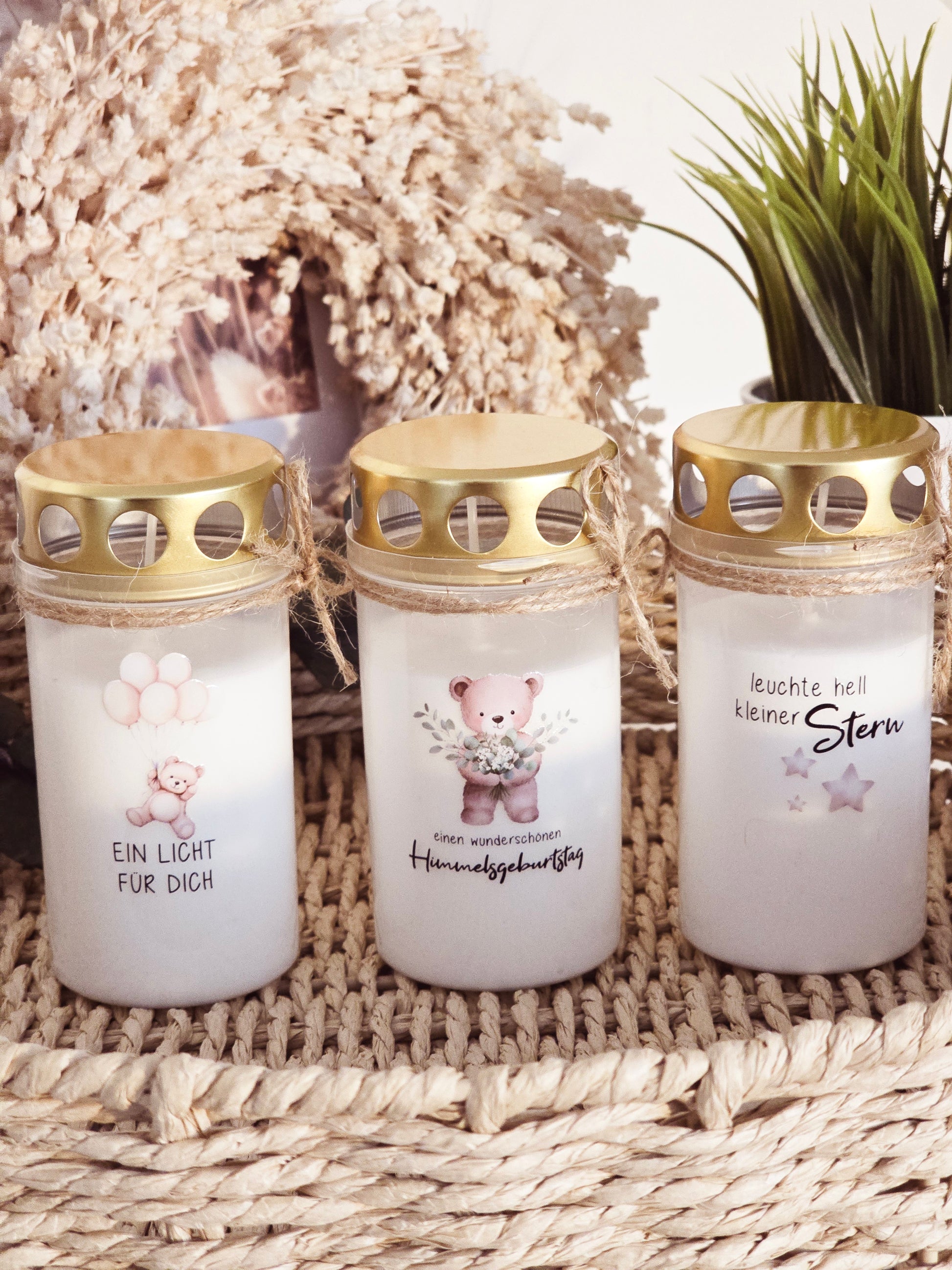 Du möchtest nicht immer nur die schlichten Grabkerzen auf das Grab stellen, Du möchtest Deinem kleinen Engel, Deinem Kind....gerne eine liebevolle Nachricht hinterlassen?