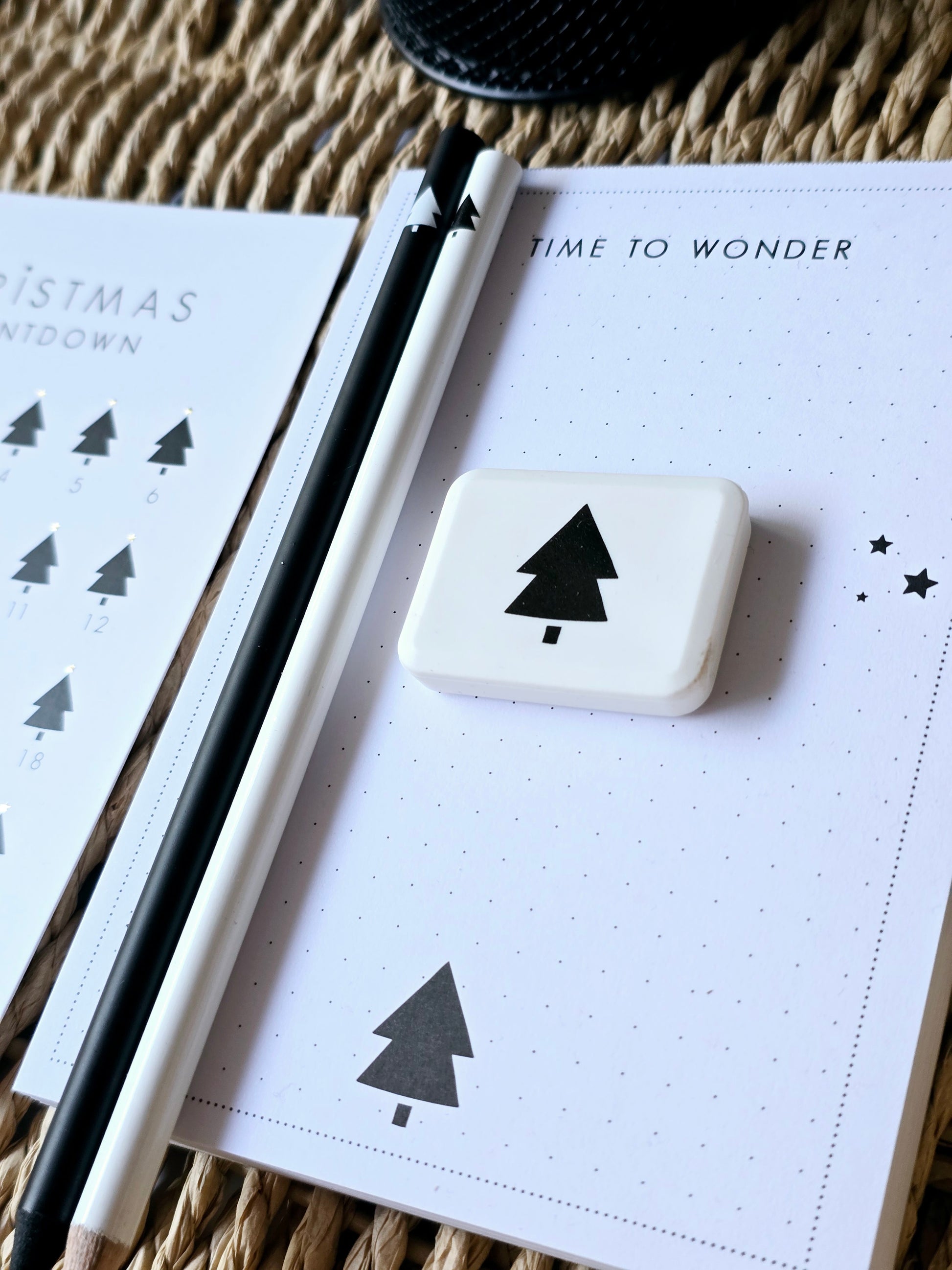 Dann ist dieser Radiergummi mit dem Tannenbaum in schwarz-weiß Optik, passend zu dem Bleistift und Notizblock bei uns im Shop, genau richtig.